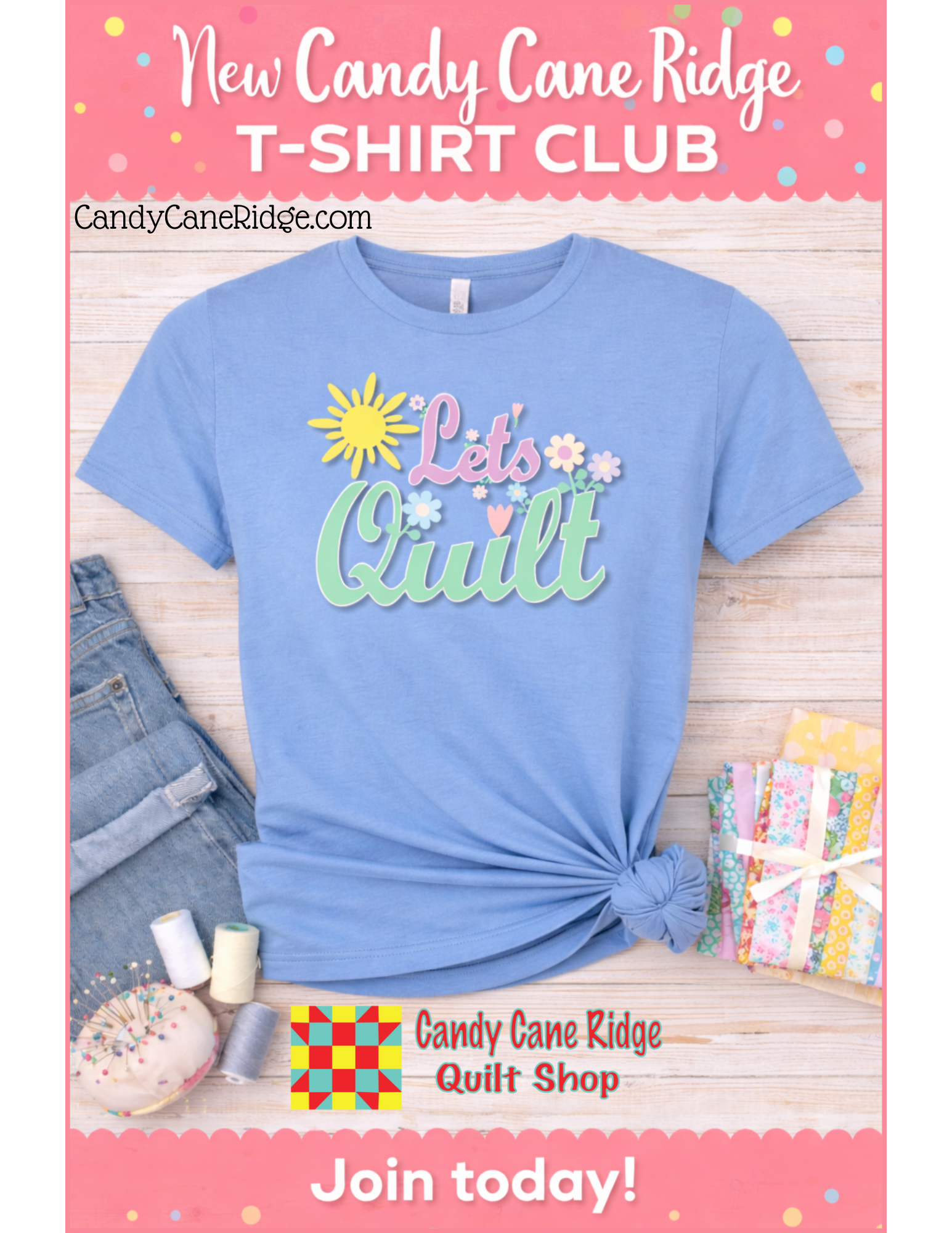Join the Candy Cane Ridge T-Shirt Club and start building your collection of fun quilting shirts! 🧵